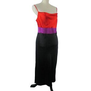 Express Satin Color Block Tier Midi Slip Dress Size S $98
