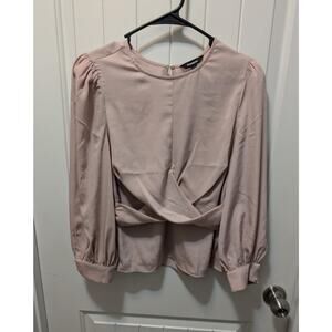Express Satin Crew Neck Puff Sleeve Wrap Top Mauve Pink Size M Casual Work