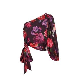 Express Satin Floral One Shoulder Tie Waist Top size Small