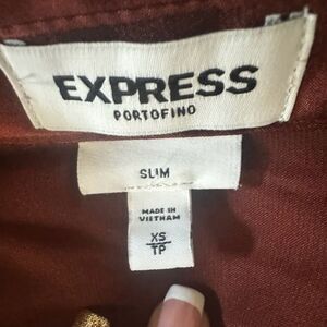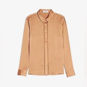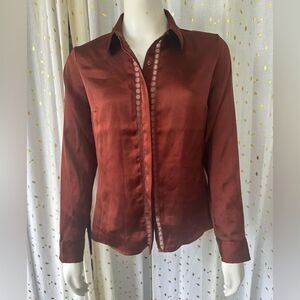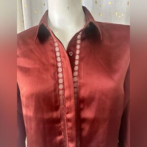 Express Satin Lace Trim Portofino Mesh Lace Button Down Collar Shirt XS Slim