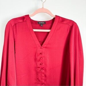 Express Wine Satin Silky V neck Button Detail Balloon Sleeve Blouse Top. Size medium. Excellent condition. Worn once. No stretch. Flowy and so gorgeous.