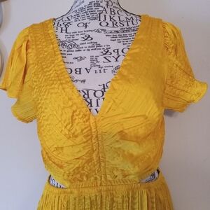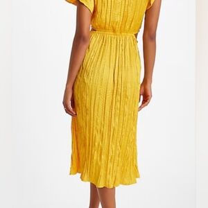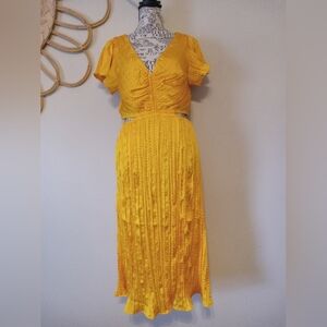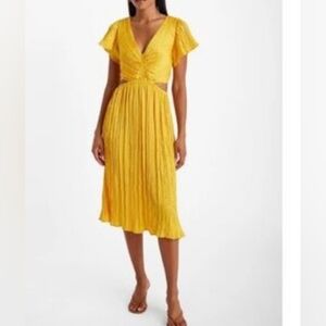 Express Satin V-Neck Flutter Sleeve Pleated Cutout Midi Dress Size S
