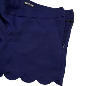 Express Scalloped Hem Shorts Navy Blue Flat Front w/ Pockets 3” Inseam Preppy 2