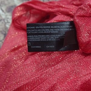 Express lightweight scarf. Coral/peach w/gold. Pair it w/tank and maxi on cooler nights. Layer w/your fave jean jacket for complete look.