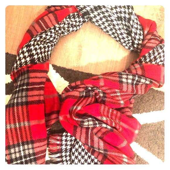Super soft double patter plaid and houndstooth wrap/scarf! Looks so good with everything. Cashmere.