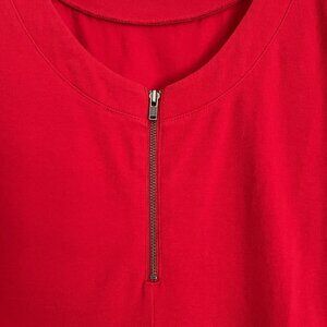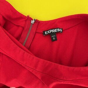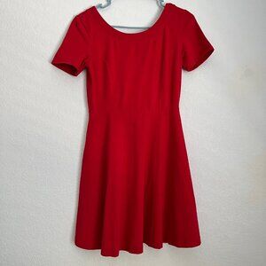 Express Scoop Neck Knit Dress with Exposed Back Zipper, Red, Size Medium