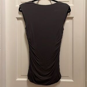 Super Soft and sexy dark gray scoop neck. Perfect with jeans for a night out or with slacks and blazer. Very stretchy and hides tummy.