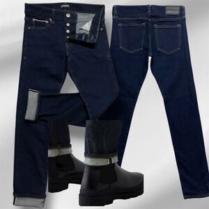 Express Selvedge Denim Men's W28 L30 Buttonfly Slim Fit Dark Blue Jeans