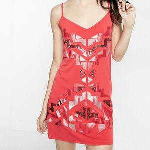 Express Sequin Aztec Art Deco Mini Slip Dress | Pink XS