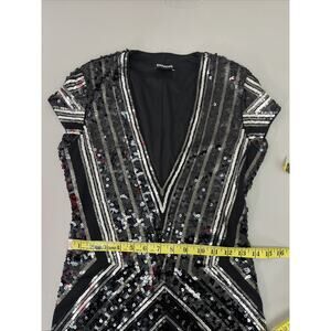 Express Sequin Bodycon Mini Sheath Dress Small Deep V Stretch Cocktail Evening