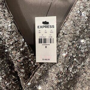 Express Sequin Draped V-Neck Cap Sleeve Mini Sheath Dress in Silver, Size Medium