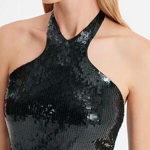 Express Sequin Halter Open Back Sheath Midi Dress NWT Hunter Green Medium
