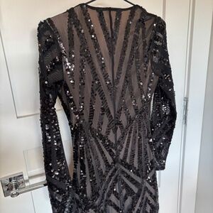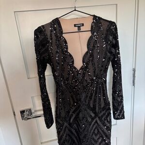 Gorgeous sequin mini dress from Express — the perfect statement piece for nights out, parties, or holiday events. Features a deep V-neckline, long sleeves, and allover geometric sequin detailing that sparkles beautifully under the light.