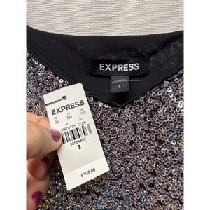 Express Sequin Mini Dress Women Sz S Black Silver Sleeveless Bodycon Formal