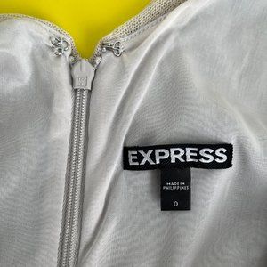 Express Sequin Mini Dress with Gathered Polka Dot Mesh Overlay, Size 0