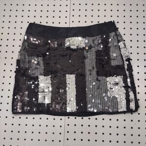 Skirt in good condition with normal wear, black/white/silver, satin waistband.