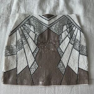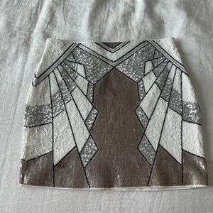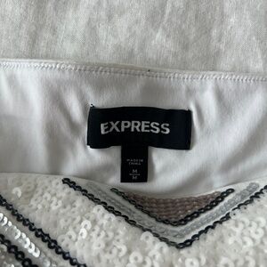 Pink, white and silver sequin mini skirt purchased from Express. Worn once, a few of the sequins need rearranging but are fully intact. no stains, in like-new condition. Size: medium