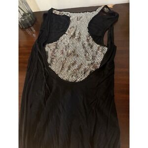 The Express Size M Y2K Nightclub Top is a stylish sleeveless top with a built-in sequin racerback, perfect for a night out at the club or a casual party. The pullover top features a solid black color with sequin accents, adding a touch of sparkle to your outfit. With a regular fit and size M, this top is ideal for the summer and spring seasons. Made by Express, this top is sure to make a statement and elevate your look for any occasion.