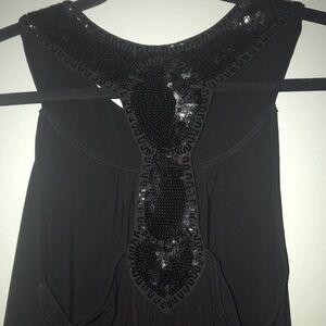 Sequins decorate the neckline and down the back. The back really makes this top so stunning!