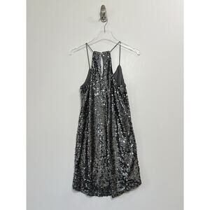 The Express Sequined Mini Dress in Silver is a stylish and shimmering option for women looking for a metallic-themed outfit. The short dress length and sequin accents add a touch of glamour, making it perfect for special occasions or nights out. The silver color and mini style give it a trendy and sophisticated look, while the brand name Express ensures quality and fashion-forward design. Perfect for those looking to make a statement with their attire.