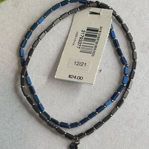 Express Set of 2 Stretch Beaded Bracelet in Blue Brown and Silver Tone