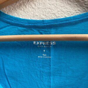 Women's Express Sexy Basics T-Shirt Small V-Neck Ombre Blue Casual Short Sleeve Pocket