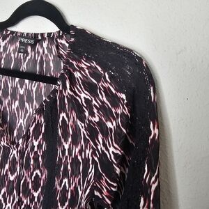 Express Sheer Abstract Multicolor Print Black Lace Accents Size XS
