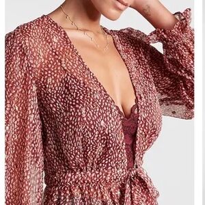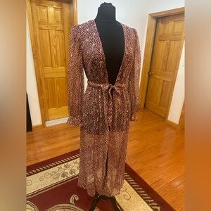 Express Sheer Brown Feather print Cover up dress size XS in very excellent
