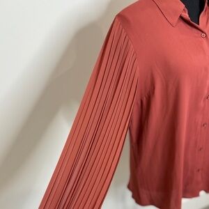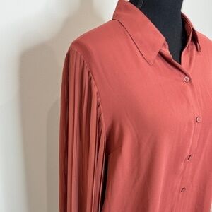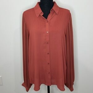 Express Sheer Brown Long Sleeve Button Up Blouse (Large)