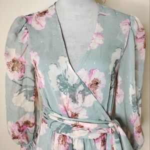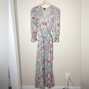 Express Sheer Floral Wrap Duster Maxi Kimono Size S/M Romantic Boho Layering