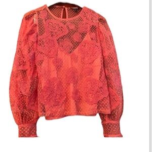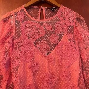 Express Sheer Lace Tank Pink Sz XS Long Sleeve Button Cuffs