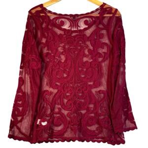 Whimsigoth Romantic Date Night Fairy Glam Express Sheer Lacey Top Womens S Burgundy Coquette Night Out NWT