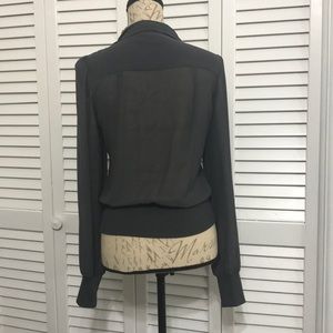 Express Sheer Ruffle Jacket. Like new. Elastic hem. Length: 22” Bust: 17.5” Shoulder: 14” Sleeve length: 25.5”