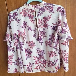 Blouse with keyhole in front and back, double button and neck and sheer, super sophisticated and versatile for day and night. Size xs but can fit s.