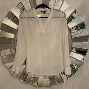 Ivory sheer top with dot pattern. Pen mark on the v part on the front. Will upload an update if I’m able to get it out