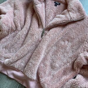 Express Sherpa Zip Up Cropped Pink Jacket Size Small