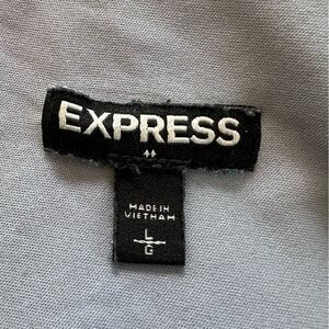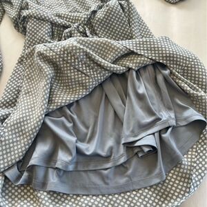 Express Shift Dress Size L Grey White Polka Dot Long Sleeves Belt Pockets.