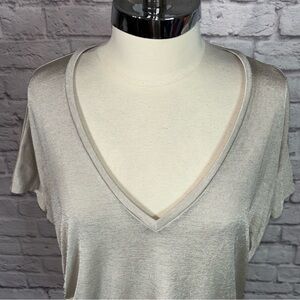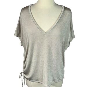 Express Shimmer Champagne V-Neck Side Ruched Dolman Sleeve Top Size L