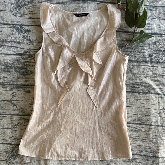 Express Shiny Cream Ruffle Career Frill Shell Top