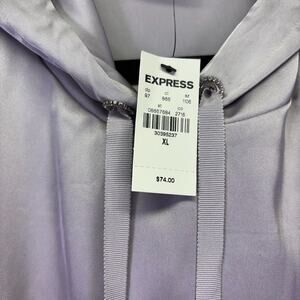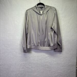 Express Shiny Satin Hoodie Pullover Size XL Silver Metallic Drawstring
