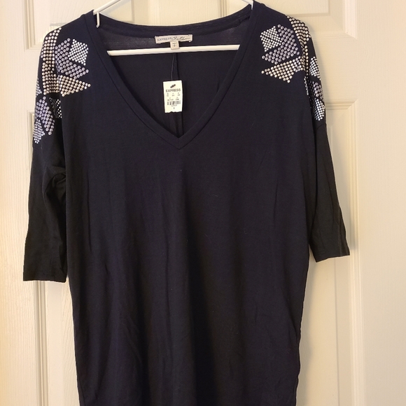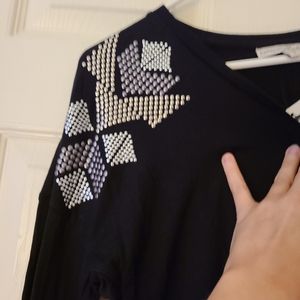 Express Black hi low shirt with metal details on shoulders