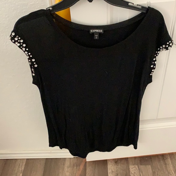 Size small Black shirt from Express with silver jewels on side. No jewels missing. Worn 3-4x. Good condition well cared for. Smoke free home.