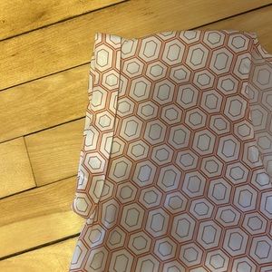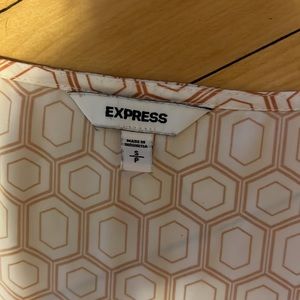 Pretty orange and cream patterned shirt. Zipper in good condition. Like new condition overall, no rips stains or tears. Cuffed sleeve as shown which is very flattering. 96% polyester 4% spandex.