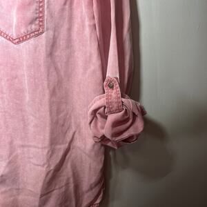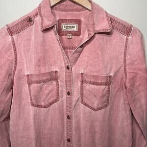 Express Shirt Button Up Boyfriend Pink Chambray Lyocell Denim Tabbed Sleeve