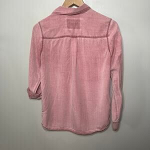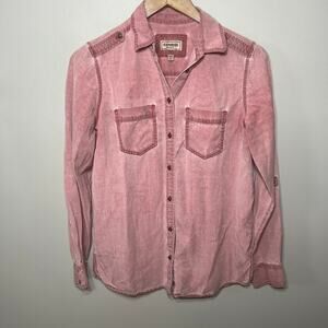 Express Shirt Button Up Boyfriend Pink Chambray Lyocell Denim Tabbed Sleeve XS