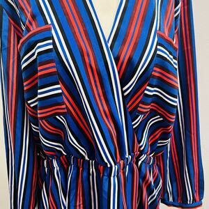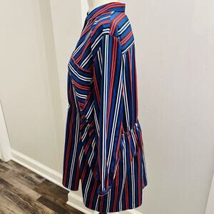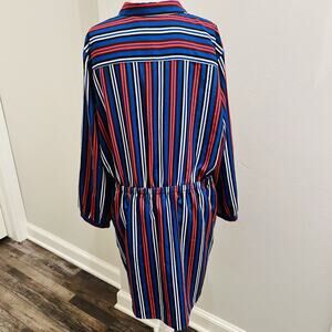 Express Shirt Dress Red White & Blue Striped Long Sleeve Dress Petite Xl (A0131)