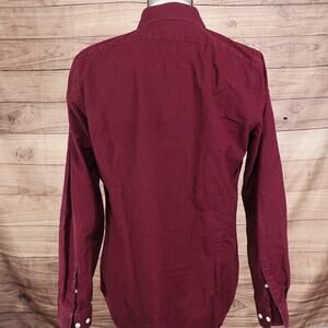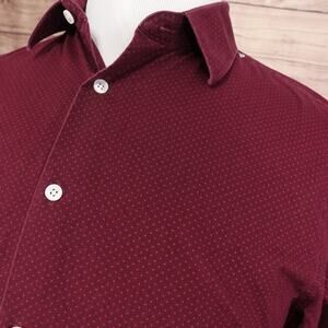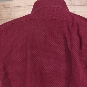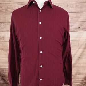 Express Shirt Mens Large Burgundy Red Extra Slim Fit Dot Button Up L/S - H3