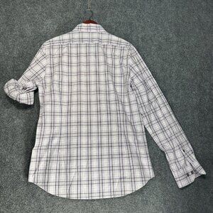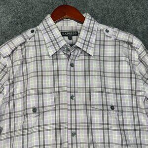 Express Shirt Mens Large Fitted Button Up Purple Stretch Plaid Roll Tab Sleeve
