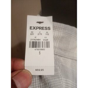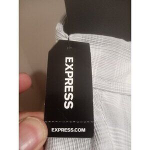 Express Shirt Mens Small S White Gray Plaid Button Up Long Sleeve MSRP $69 New