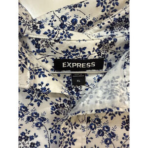 Express Shirt Mens XL Blue White Floral Button Up Short Sleeve